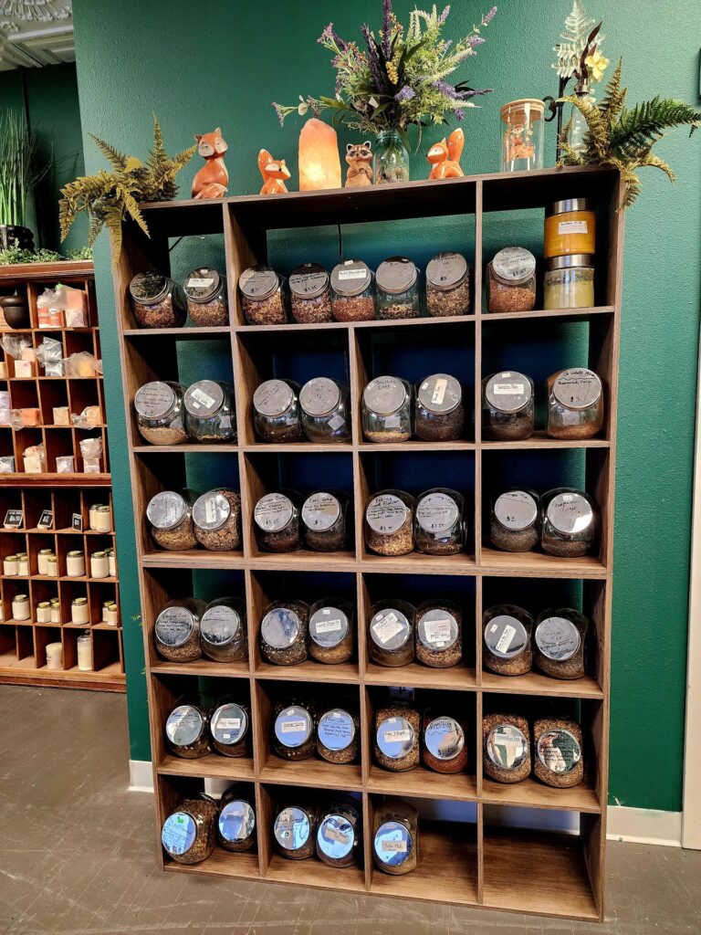 A small-town apothecary, metaphysical gift shop, and tea cafe with a beautiful, covered patio to sit. Full of crystals, books, incense, herbs and teas.